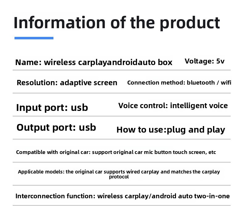 2-in-1 Wireless Carplay Adapter, Horizontal Plug-In Smart Car Interconnection Box, Android Autocarplay Box