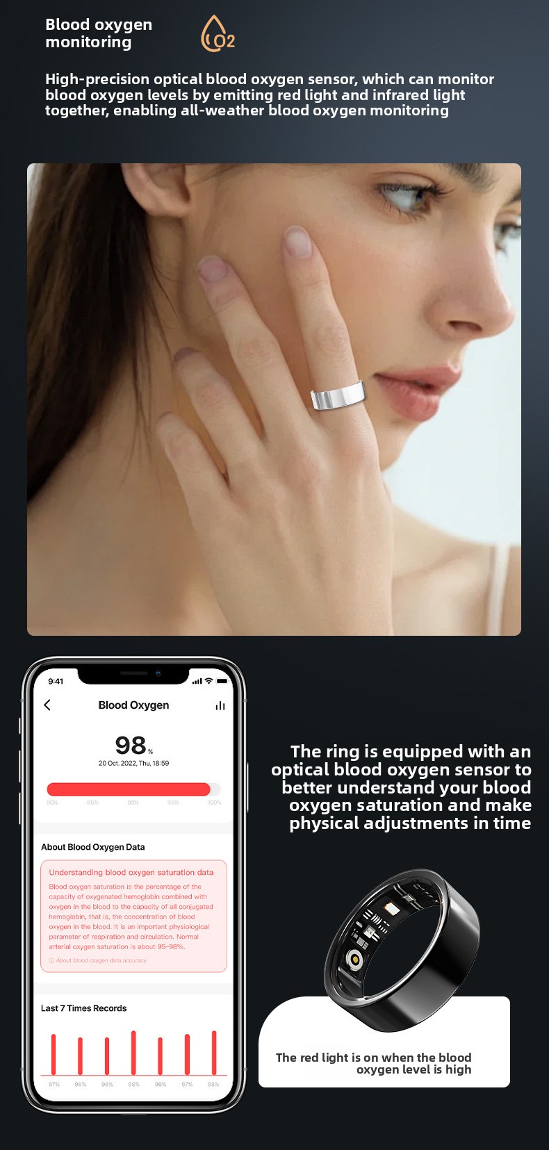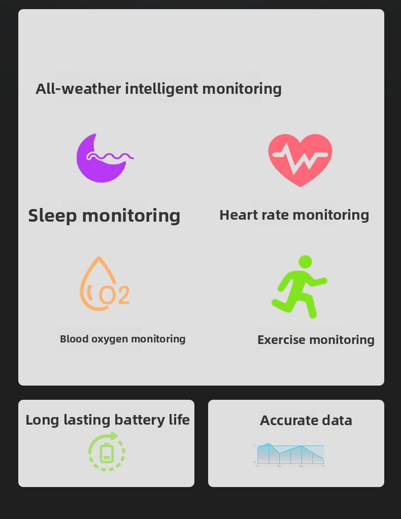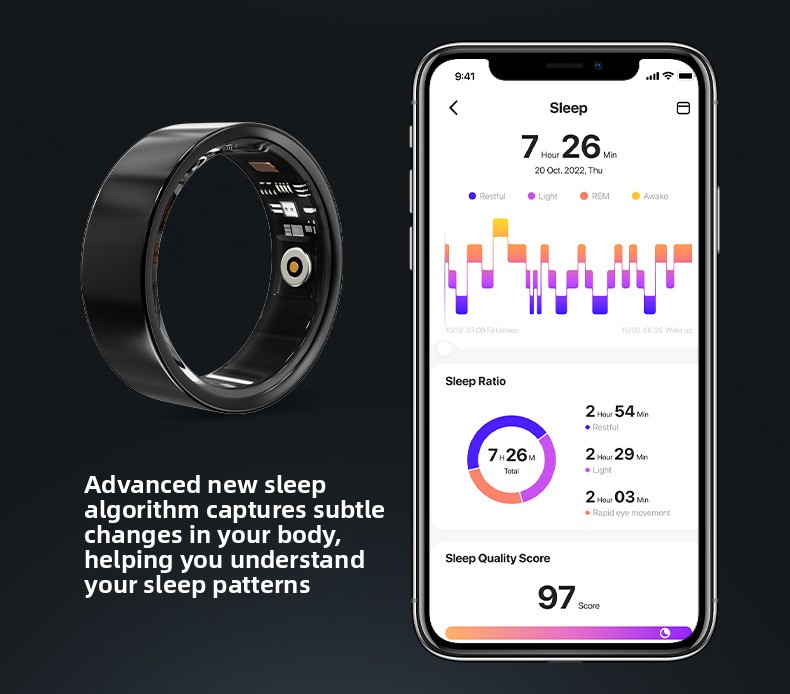 Blood Oxygen Tracking: Monitors blood oxygen levels during sleep and activity.
