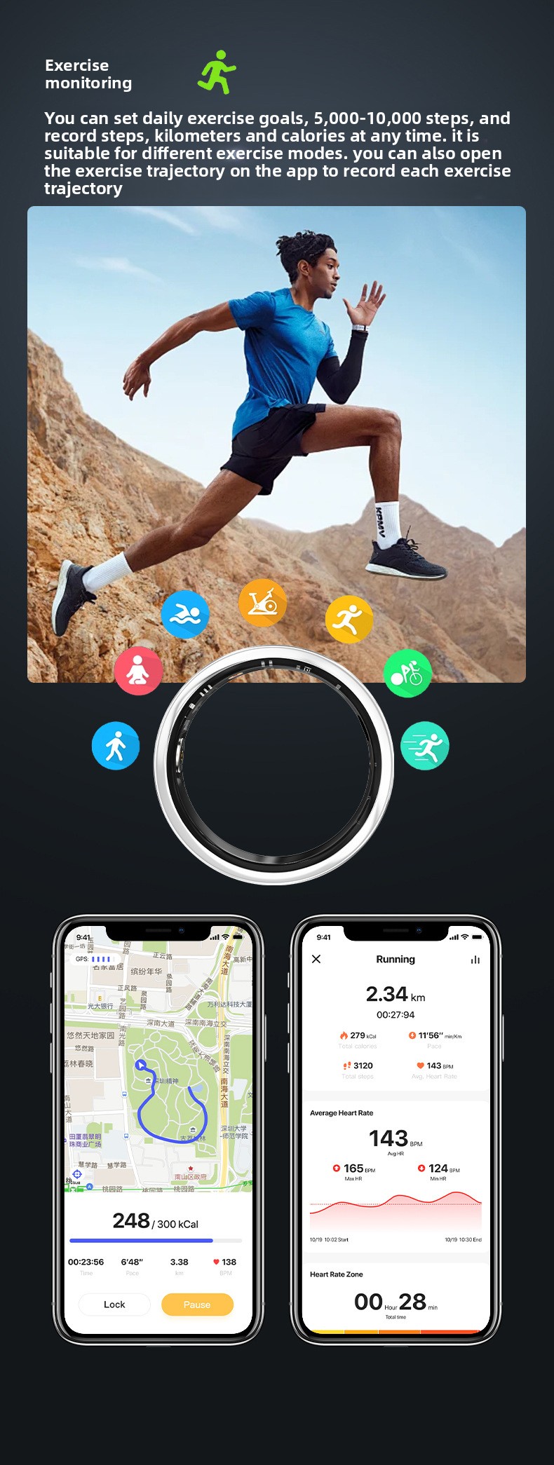 Step Counting: Accurately records daily steps and exercise data.