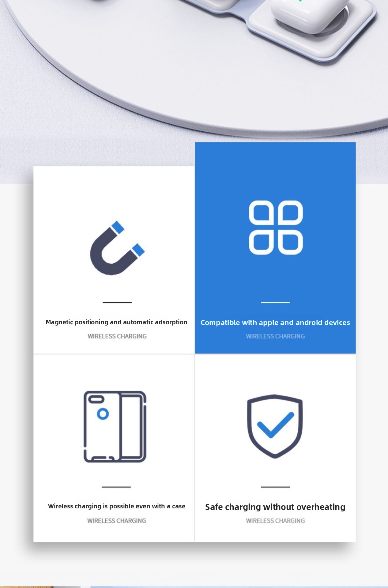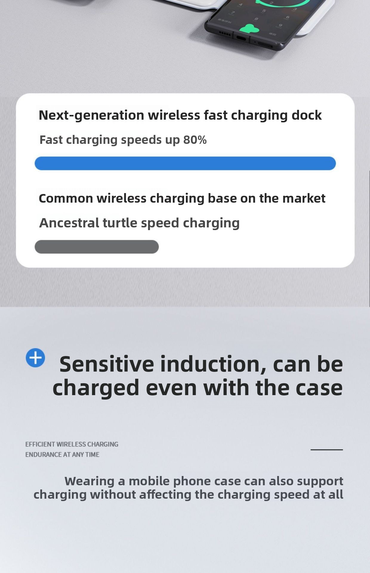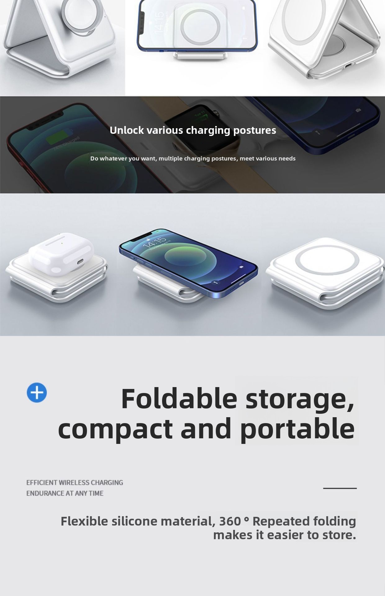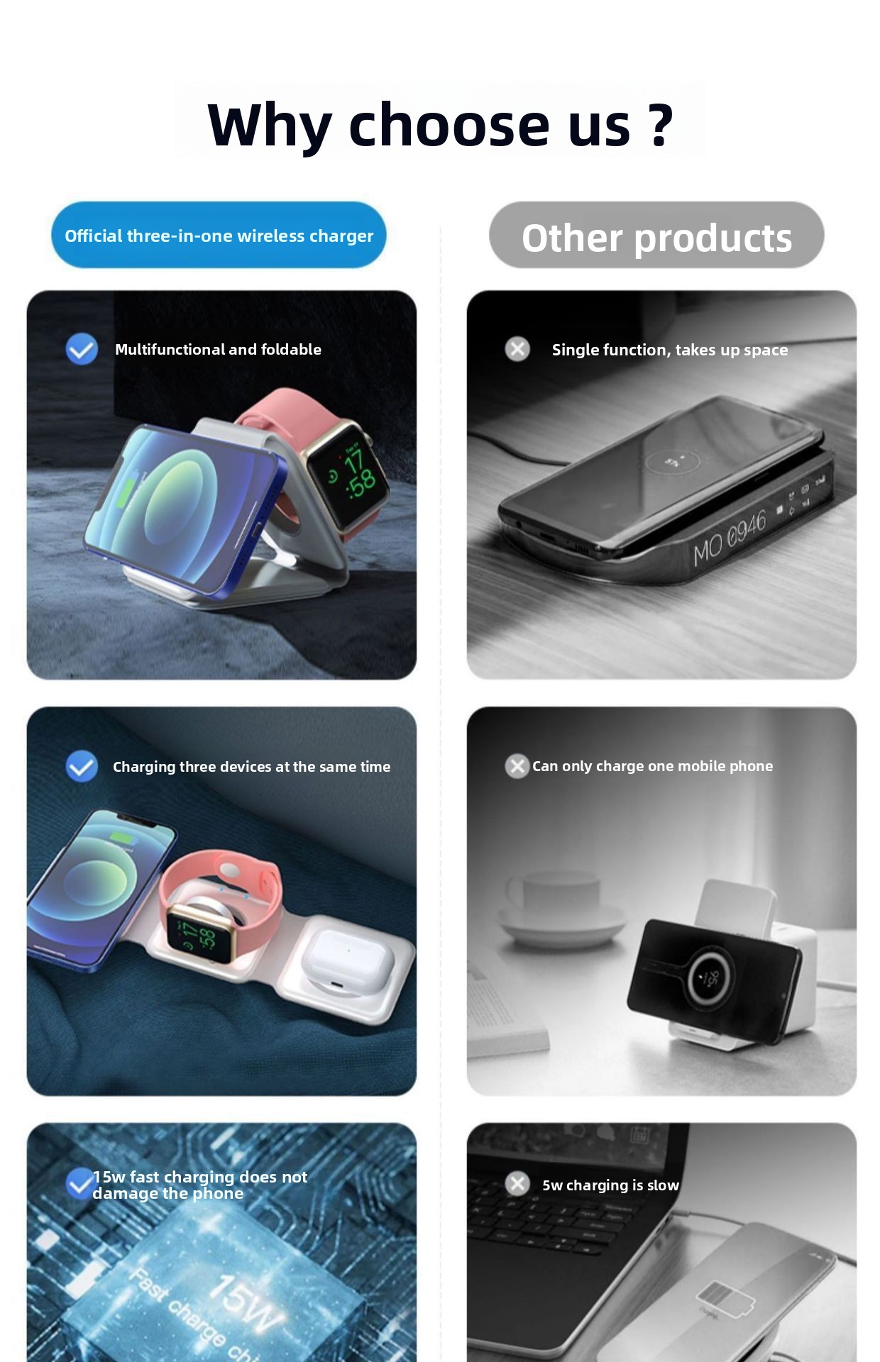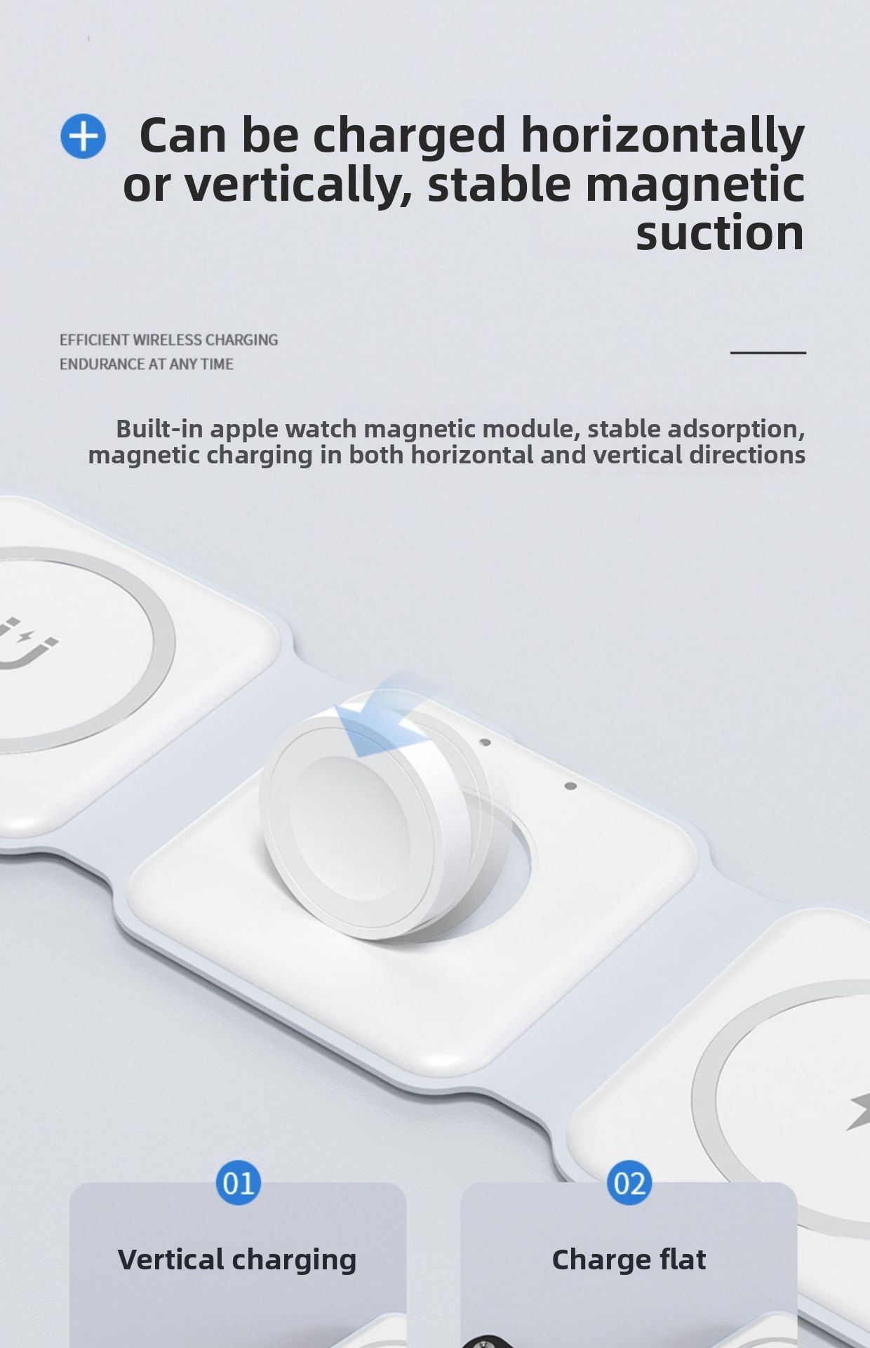 Three-in-One Function - Simultaneously charges phone, watch, and earbuds